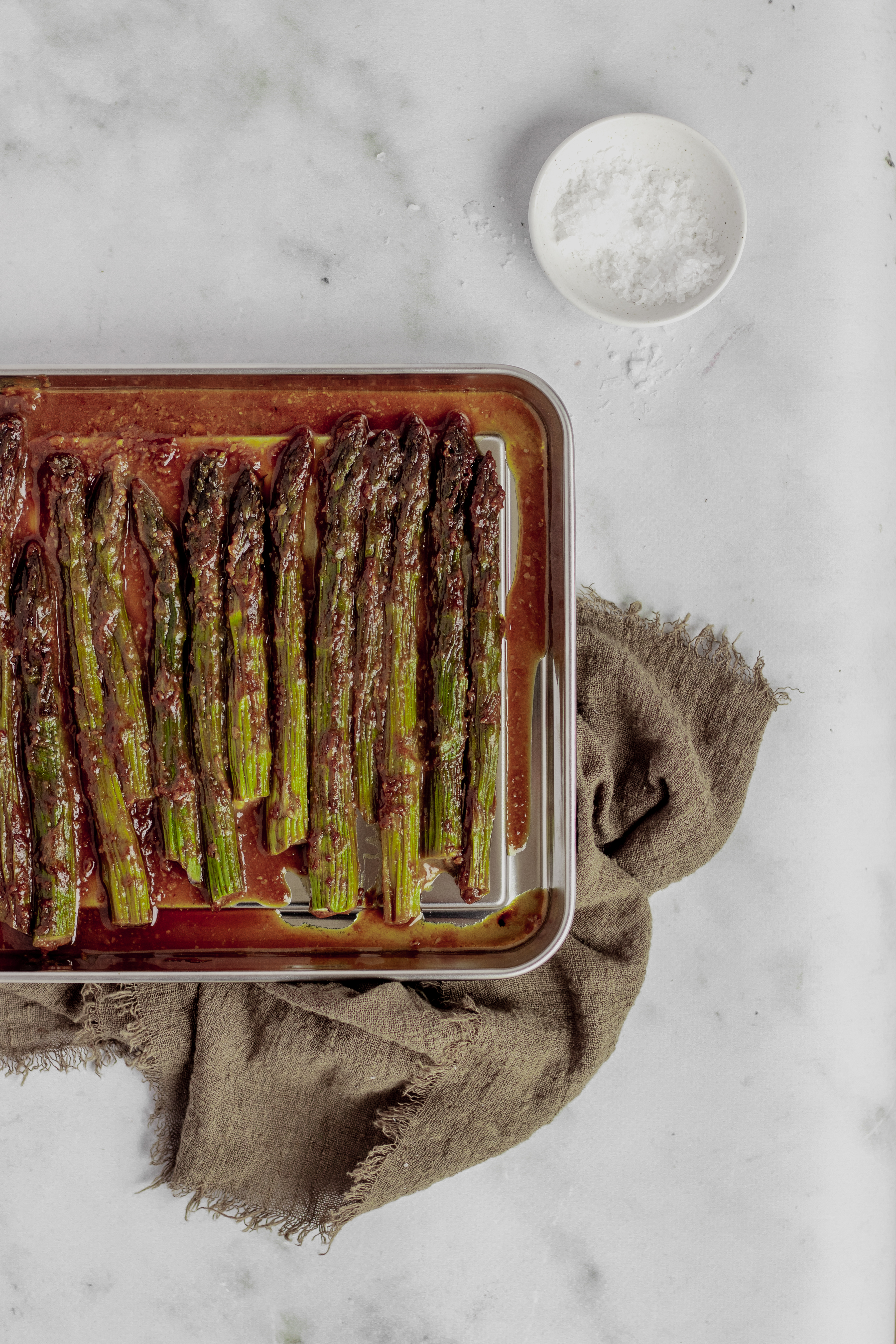 Geroosterde groene asperges met miso uit de oven (supersnel klaar!)