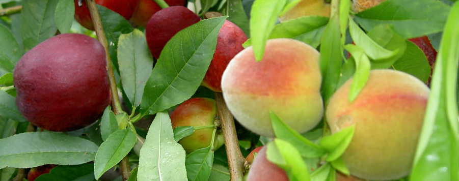 Hier groeien abrikozen, pruimen, perziken en nectarines aan.