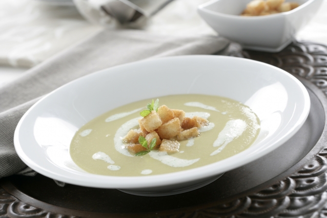 Vichyssoise is een koude soep die Frans klinkt, maar in New York is uitgevonden. De soep wordt gemaakt van hele simpele, boerse ingrediënten als prei en aardappels, maar door de toevoeging van room wordt hij fluweelzacht.