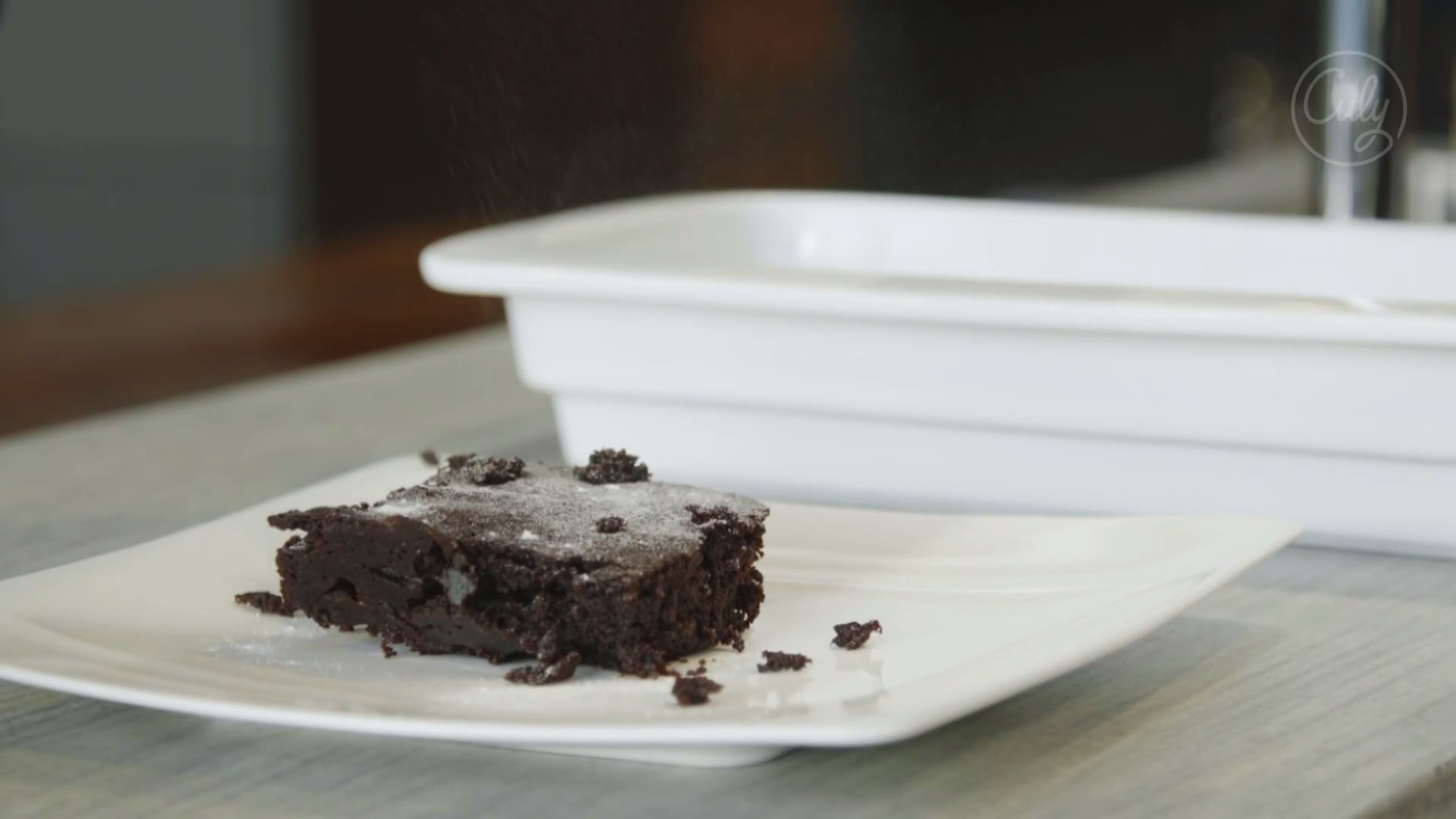 Vet de ovenschaal of bakvorm in met wat boter en doe er het beslag in. Zet de schaal vier à vijf minuten op 1000 Watt in de magnetron. Laat de brownie vijf à tien minuten afkoelen voor het serveren.