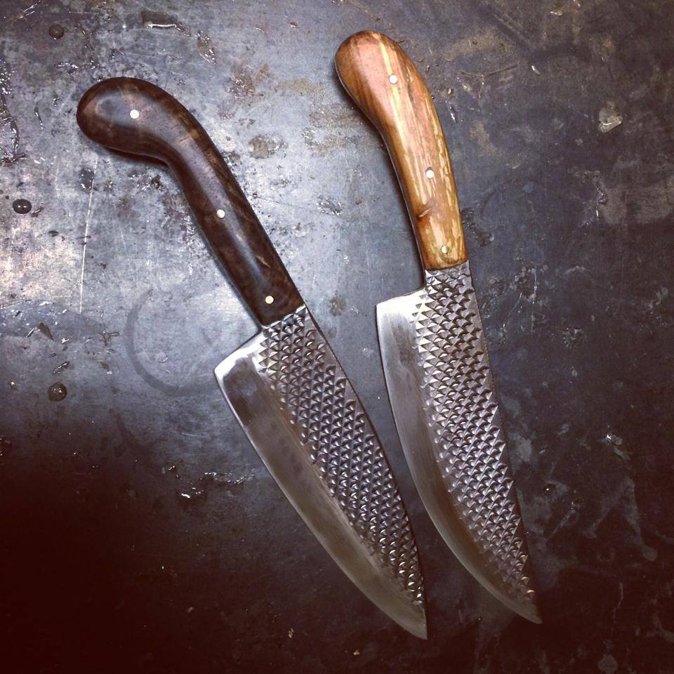 Dat ze met de hand worden gemaakt, ten eerste. Bovendien hebben alle messen een rasp aan de zijkant, wat uniek is. De vader van Chelsea is hoefsmid en hij leerde haar het vak. In zijn shop begon zij te experimenteren met het vervaardigen van messen.
