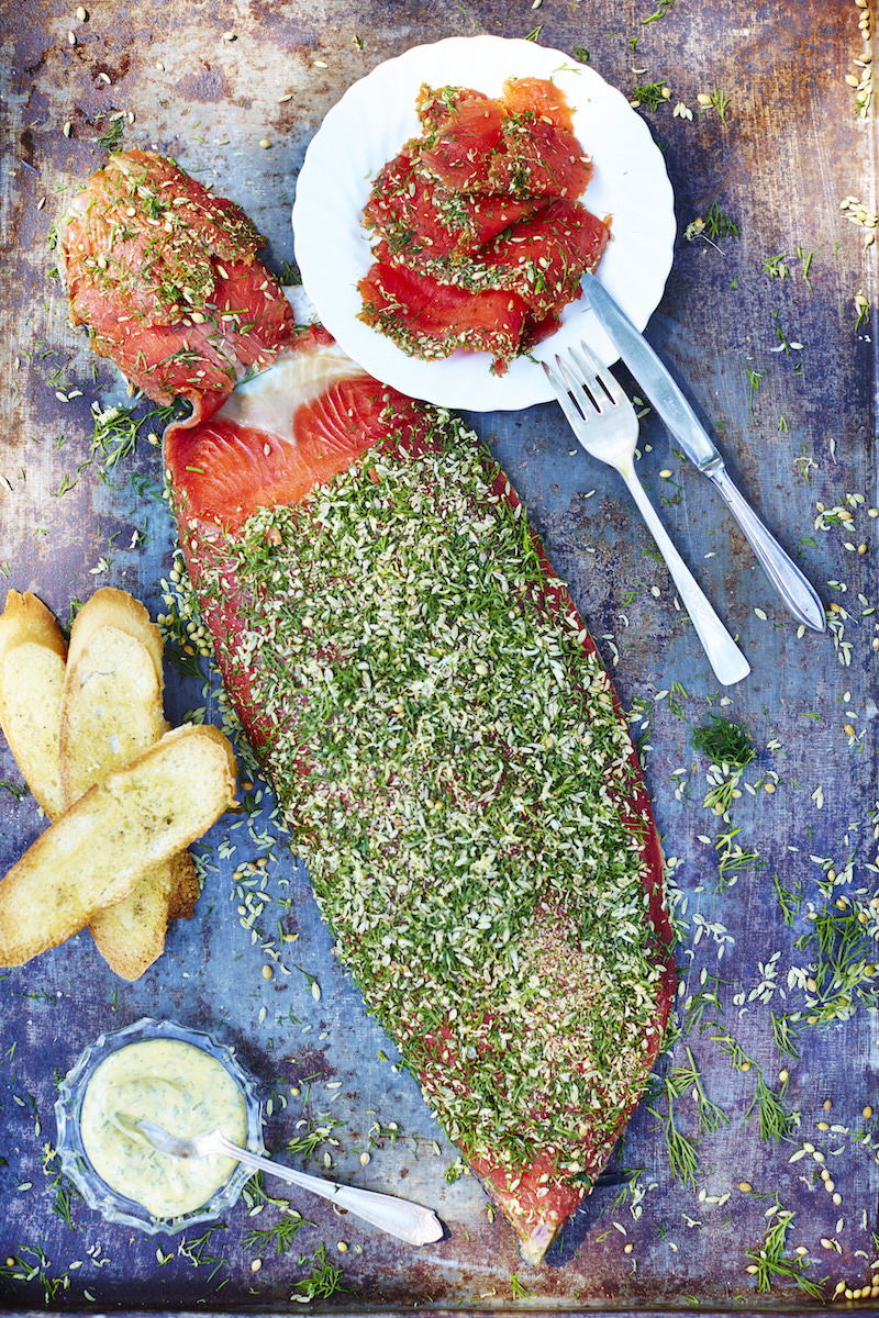 Naar recept:ย Gravad Lax met mosterd-dillesaus van Bart van Olphen