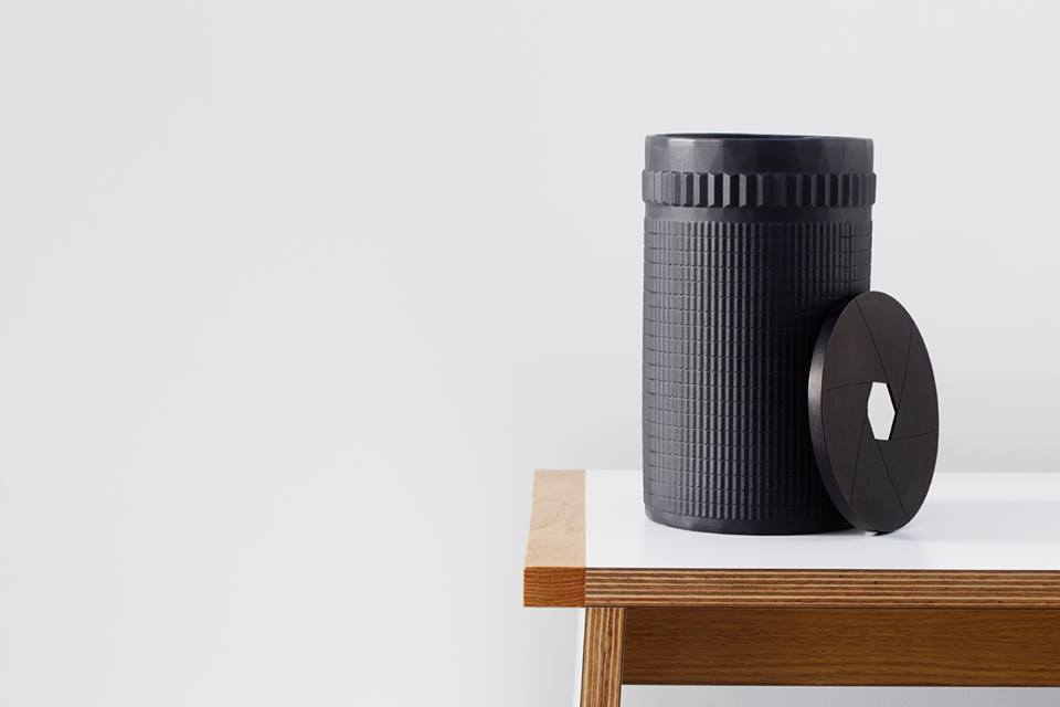 Diaphragm bestaat uit slechts één object, gemaakt van mat zwart porselein en aluminium. Voor dit object geldt: wees creatief en gebruik het waarvoor jij het wíl gebruiken. Het ontwerp is geïnspireerd op fotografie, en dat zie je.