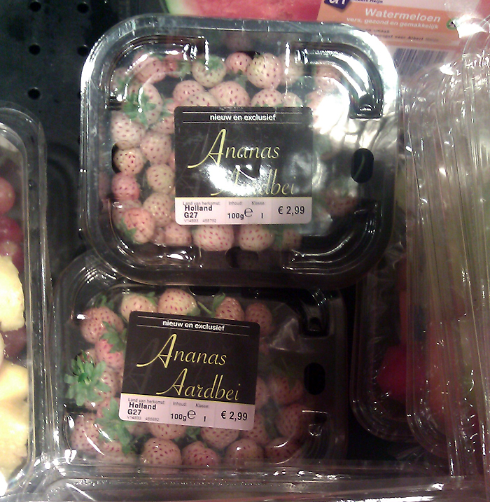 De ananas aardbei (Fragaria x ananassa) is al enige tijd populair in Engeland onder de naam ‘pineberry’. Nu wordt de vrucht ook in Nederlandse kassen verbouwd en zijn ze bij supermarktketen Albert Heijn te koop.