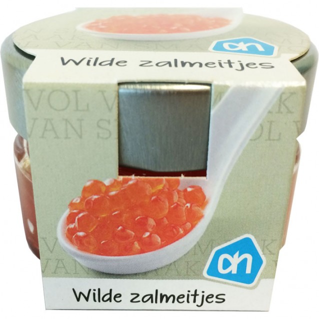 Bij Albert Heijn koop je wilde zalmeitjes voor € 5,99 voor 50 gram. Bij de Aziatische delicatessenzaak betaalden we € 9,95 voor een potje van 50 gram; hierop stond dat de eitjes van zalm uit Alaska komt.