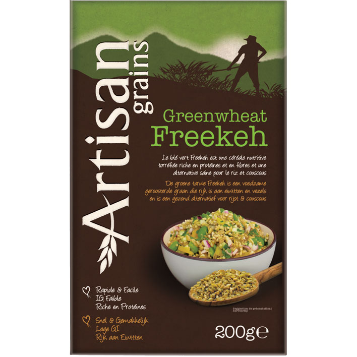 Freekeh is niet freaky, maar een oeroud Midden-Oosterse graansoort. Een harde tarwe die onrijp wordt geoogst en met kaf en al in de zon wordt gedroogd. Het graan wordt vervolgens in de brand gestoken (wat het de geroosterde smaak geeft), tegen elkaar gewreven en vervolgens in hele kleine stukjes gebroken. De grootste kans om het te vinden is bij de Marokkaanse of Midden-Oosterse winkel en sommige grote AH-filialen. En online! Het is ook eventueel te vervangen door parelgort.