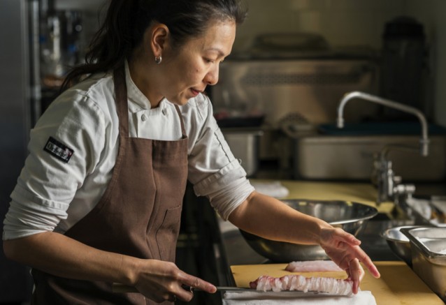 De in Los Angeles geboren kok werkte eerder in Japanse restaurants waar ze de gasten verblijdde met haar omakase menu’s, welke worden samengesteld door de kok en in een specifieke volgorde worden geserveerd. Erna vertrok ze naar Japan om in het restaurant van haar neef te werken en kwam ze voor het eerst in contact met de kaiseki keuken. Inmiddels runt ze al vier jaar haar eigen restaurant waar ze standaard een 13-gangemenu ($185,-) serveert.