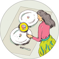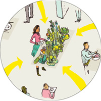 Terwijl je een bord pakt zie je een poster die uitlegt dat mensen die grotere borden gebruiken vaker geneigd zijn om meer te eten. De poster zegt niet zo zeer wat je moet doen, maar beïnvloed wel je gedrag. Door het geven van deze informatie is het gebruik van kleinere borden zelfs verdubbeld.