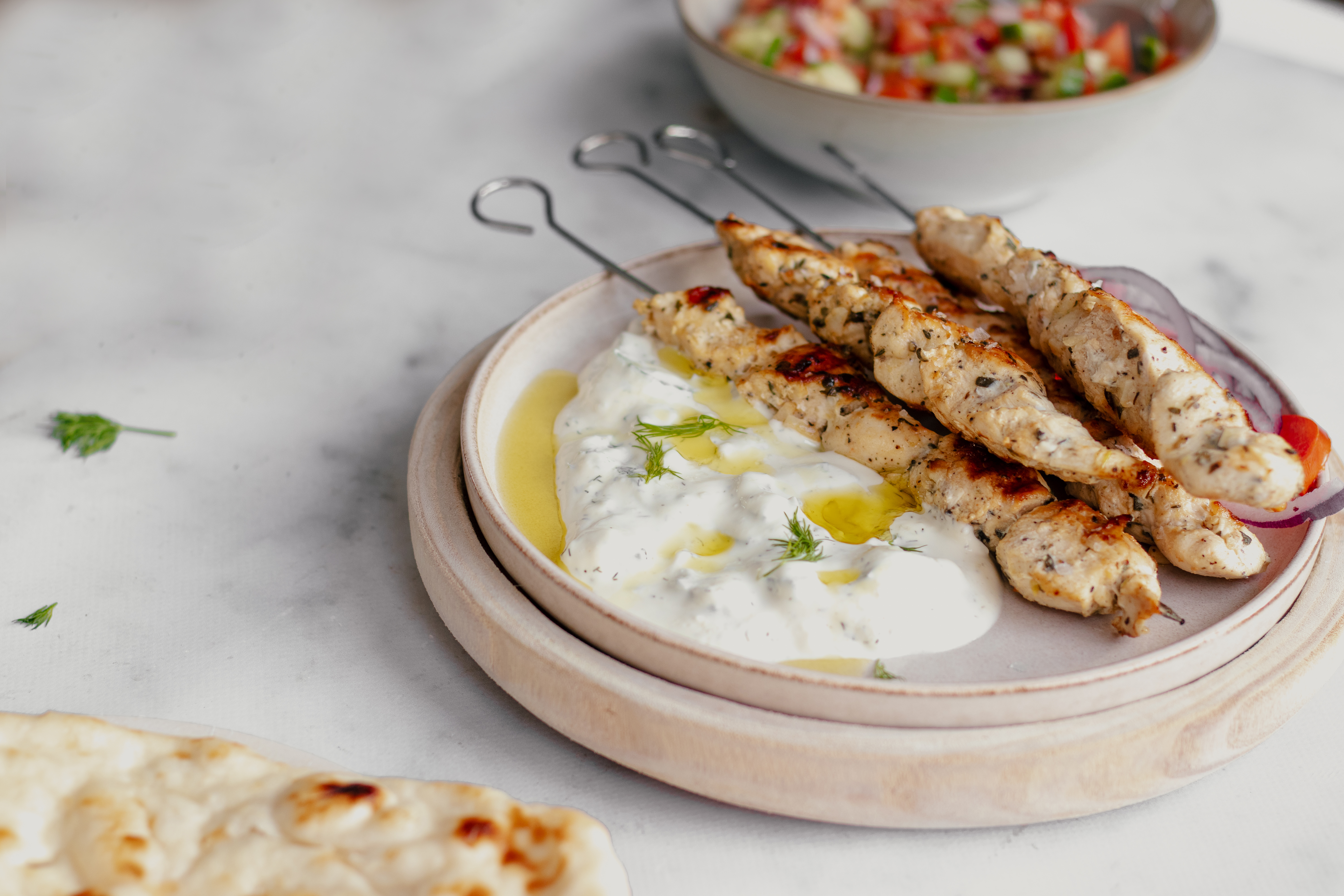 > Naar het recept: Griekse kipsouvlaki met pita