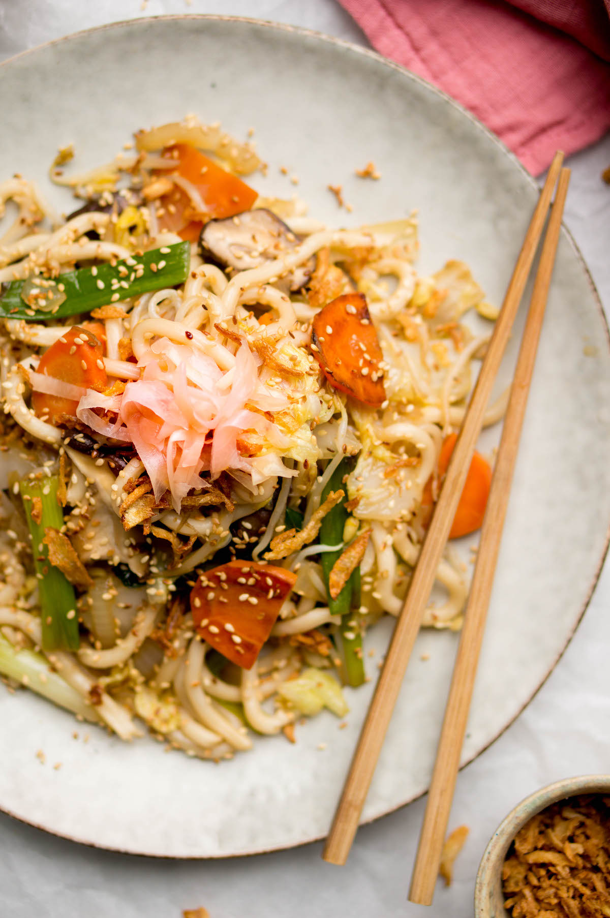 > Naar het recept: yakisoba (Japanse udon noodles met héél veel groenten)