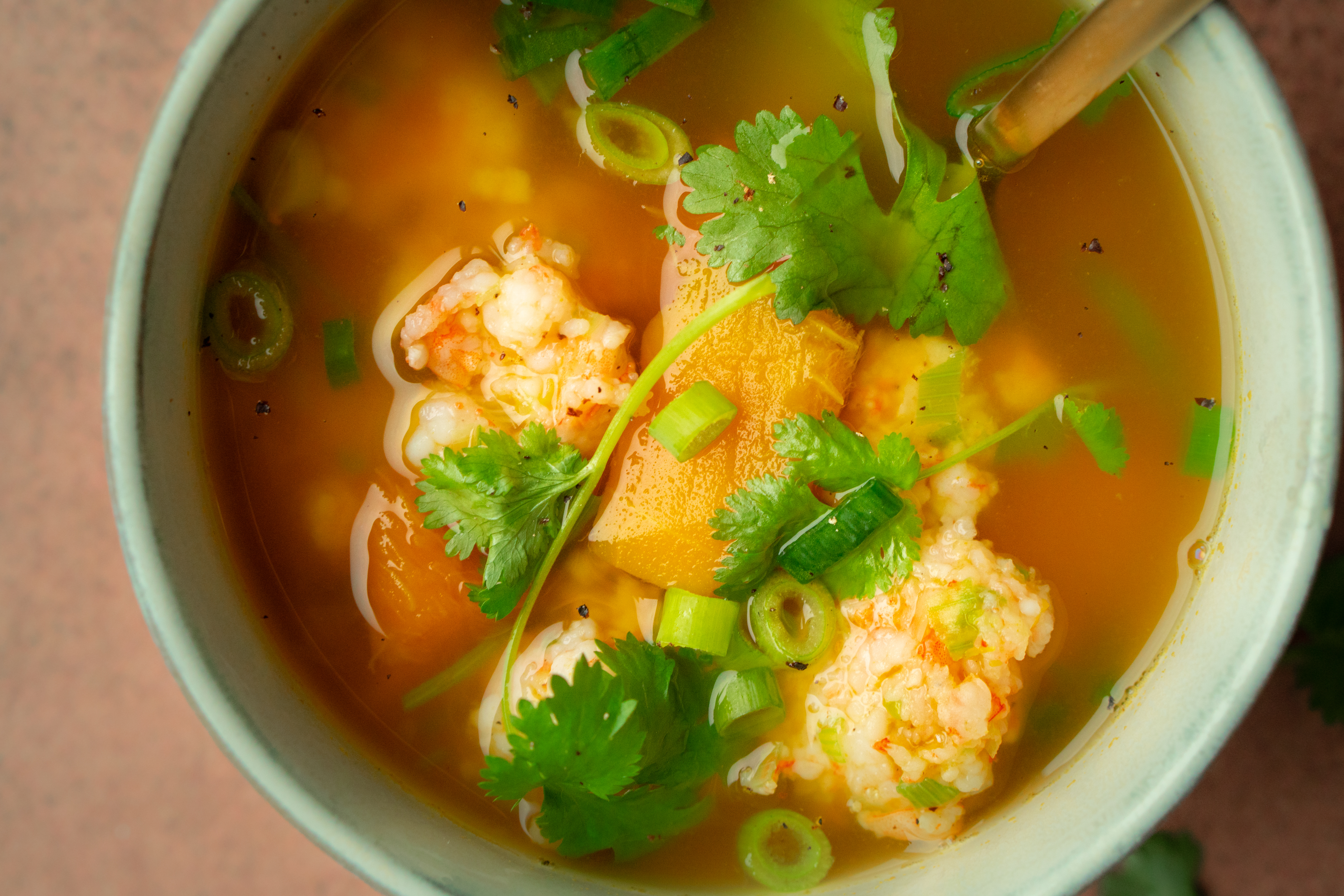 > Naar het recept: lichte pompoensoep met garnalen in Vietnamese stijl