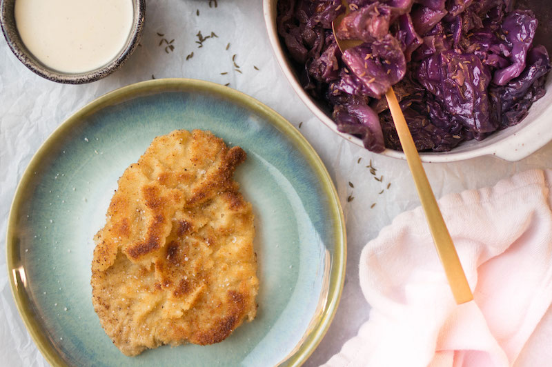 Deze schnitzels met rode kool en biermayonaise zijn een tof gerecht voor op de zaterdag. Wie had gedacht dat rode kool zo lekker zou zijn? Met een herfstbiertje erbij maak je het compleet.