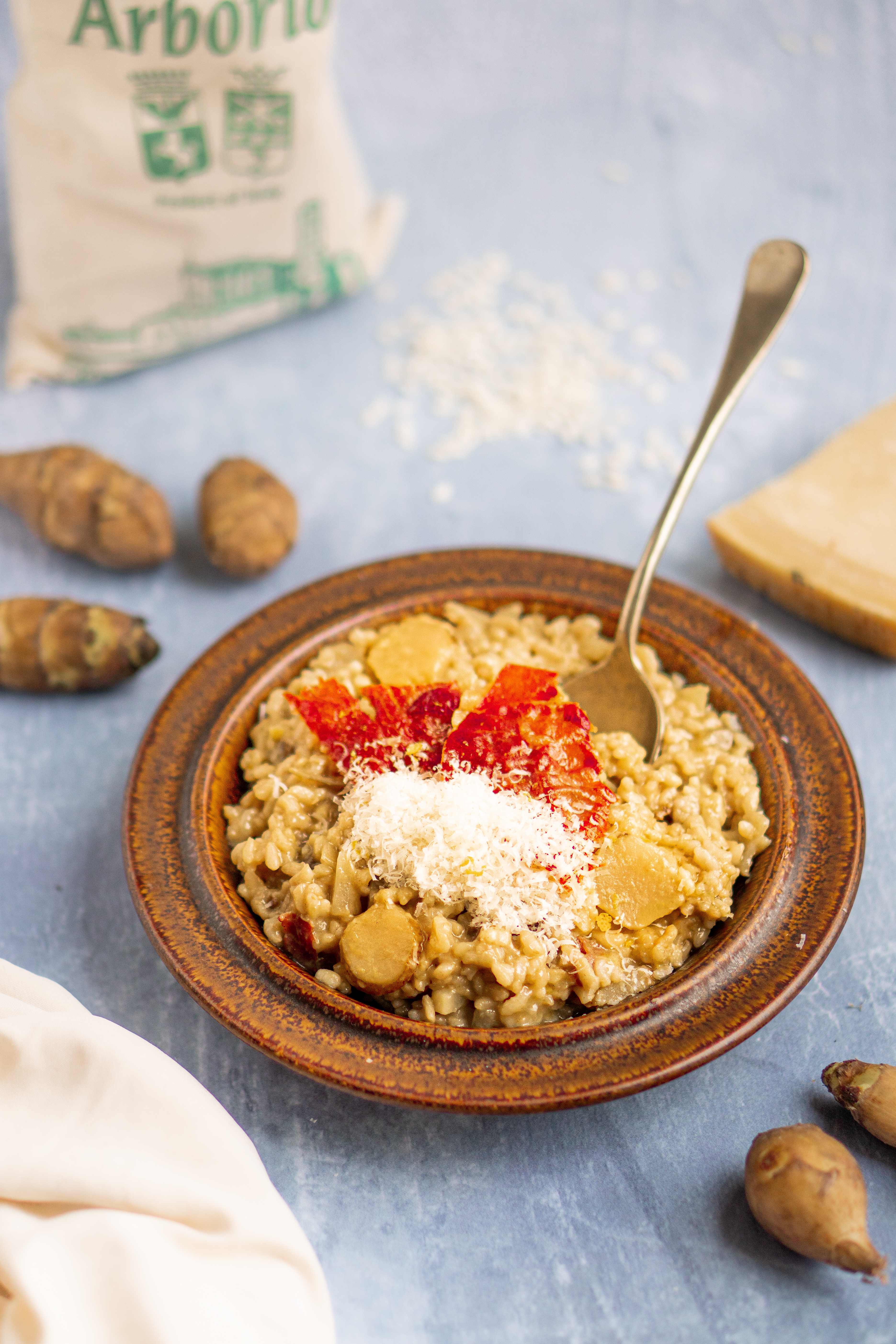 Bron:> Naar recept: risotto met aardpeer en krokante ham
