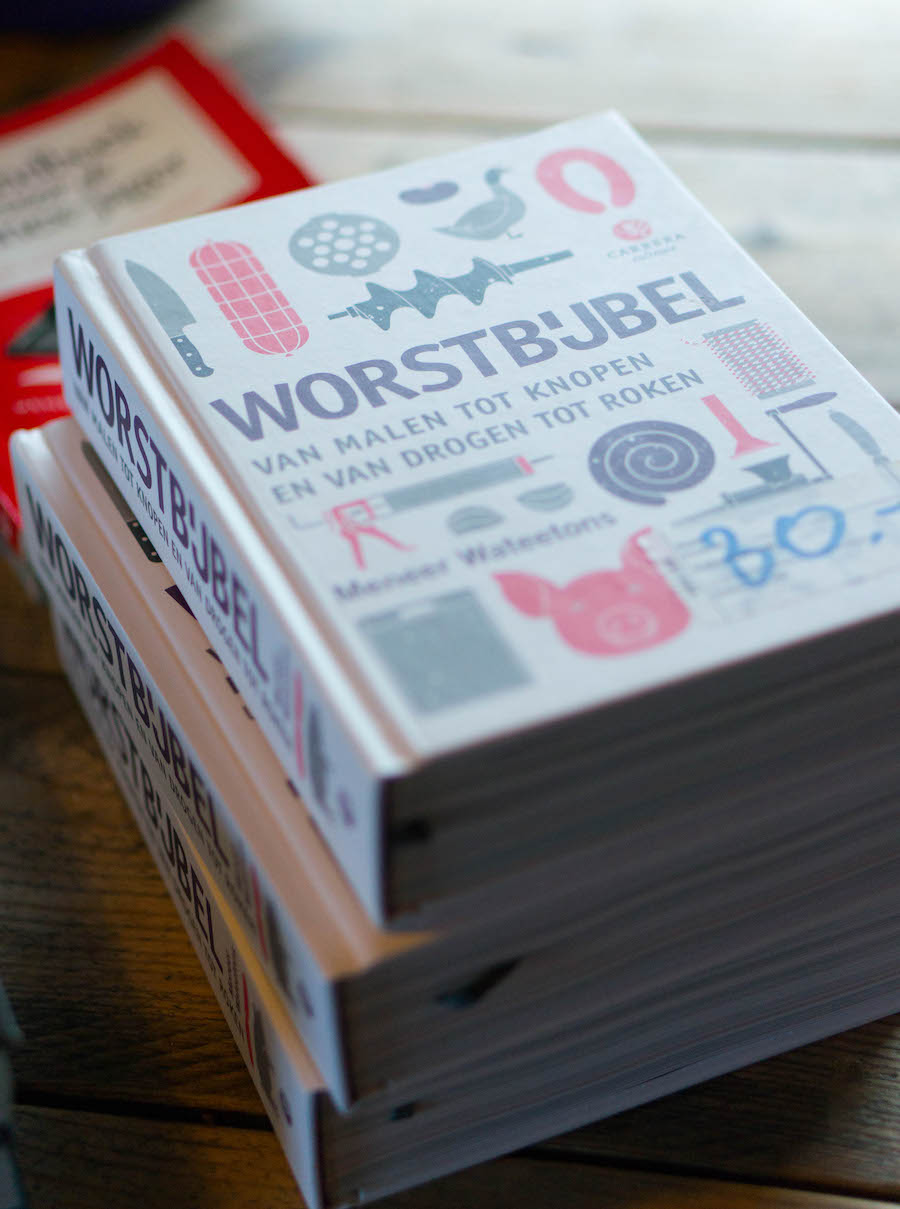 Meneer Wateetons helpt je daarmee graag op weg. Onder andere met zijn nieuwe Worstbijbel, een new & improved versie van het eerder verschenen boek Of je worst lust!. Hij schreef het samen met Sjoerd Mulder. Nuchter en met humor leert de Worstbijbel je hoe je worst draait, vult, knoopt, rookt en droogt. En alle worsten komen aan bod: verse braadworst, gedroogde worst, bloedworst en zelfs vegetarische worst, om er maar een paar uit het worstenscala te noemen.