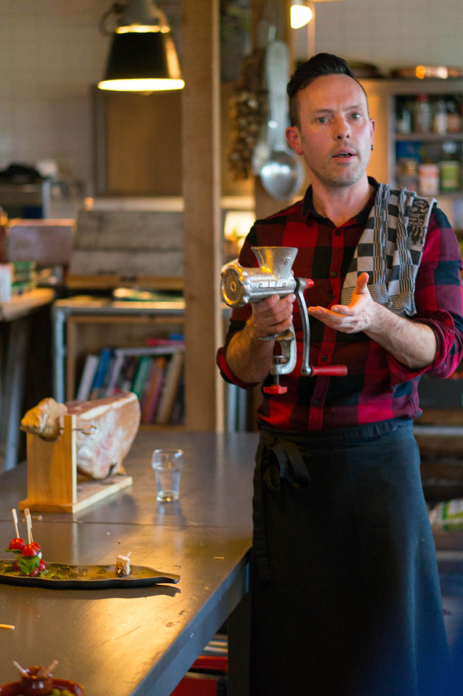 Meneer geeft trouwens nog veel meer workshops: droge worst maken, bloedworst maken, van kop tot staart koken, fermenteren, kimchi, koken met vuur en fermenteren. Yvette van Boven raadde zijn workshops eerder al aan. En Culy nu ook.