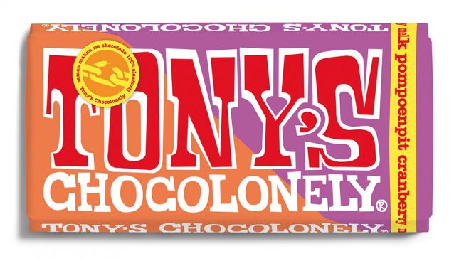 Met de nootachtige smaak van de geroosterde pompoenpitjes en de friszure cranberry in Tony’s melkchocolade krijg je ’t wel warm deze winterdagen. Berry, berry, berry nice!