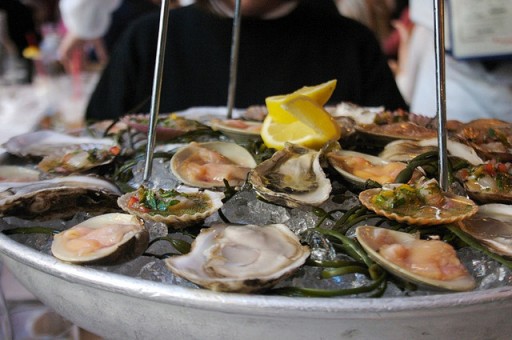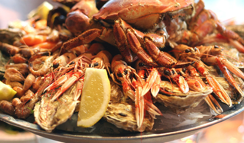 Volgens kenners hoort het volgende er sowieso op: (verschillende soorten) oesters, gekookte kreeft, langoustines en garnalen of gamba’s.