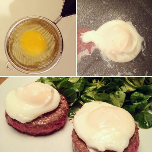 Het belangrijkste aan deze tip is het feit dat je het ei eerst breekt boven een fijne zeef. Al het (te) waterige eiwit zal door de zeef druipen. Wat je overhoudt is stevig eiwit met daarin de dooier. Je kunt het eitje daarna in het water kieperen, maar als je pan groot genoeg is, kun je hem ook met zeef en al in het water laten zakken en hem er voorzichtig uitrollen, zoals ze bij Serious Eats doen.