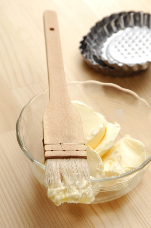 Leg voor een extra net effect een tweede laag bakpapier in je schaal, maar dan overdwars zodat de hele schaal is bedekt. Zorg er ook bij deze laag voor dat de randjes goed scherp gevouwen zijn en netjes in de schaal ligt. Voor extra zekerheid kun je weer invetten (of kwasten) met bakspray of gesmolten boter.