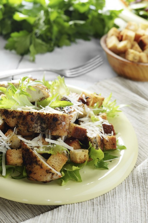 Een must: lekkere zelfgebakken croutons. En vergeet uiteraard de dressing niet, bijvoorbeeld op basis van yoghurt. Of wat dacht je van fruit? Aardbeien of mandarijntjes zijn een heerlijke toevoeging aan een salade met kip. En strooi er als laatste wat kaas (bijvoorbeeld Parmezaanse) overheen. Smakelijk!