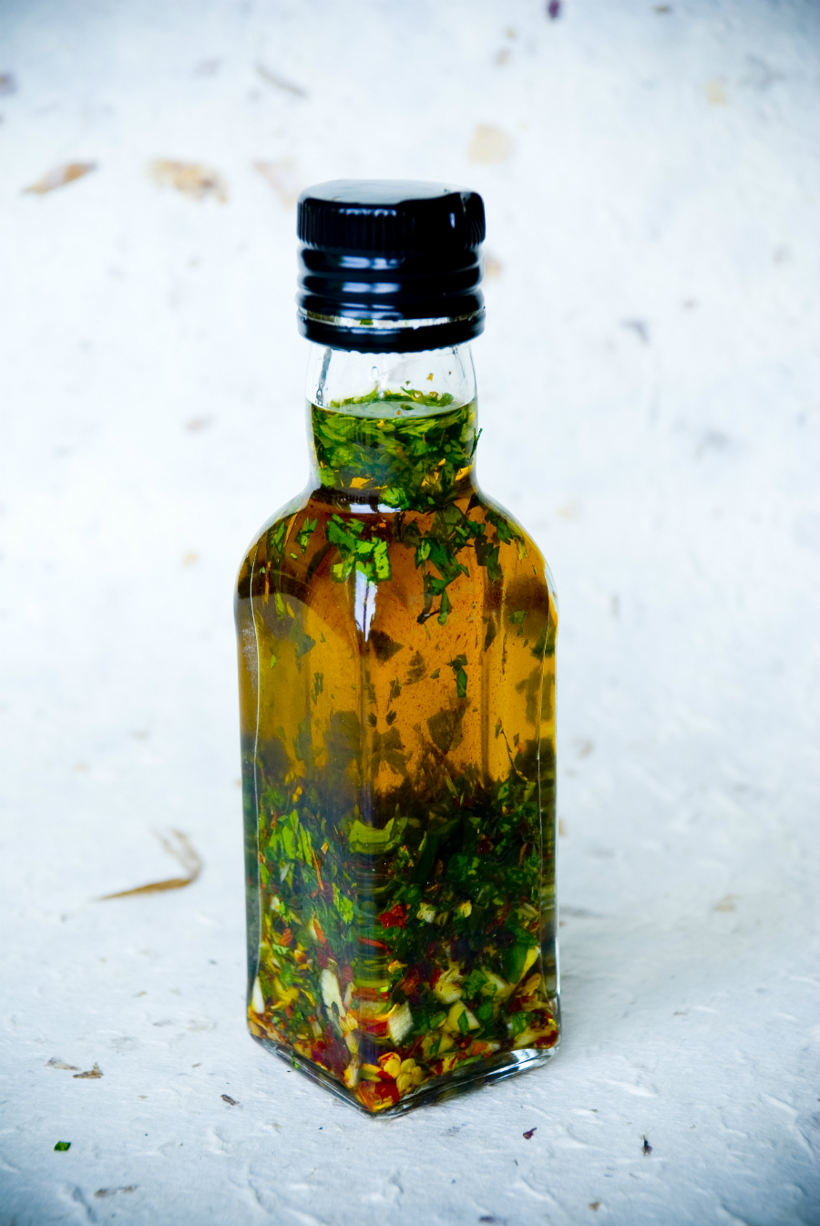 Gebruik het liefst zo goed en vers mogelijke ingrediënten, en was en droog (het liefst minstens een nacht) de smaakmakers goed. Dit laatste geldt ook voor het flesje waar je de olie in wil bewaren, het beste kun je ze zelfs steriliseren.