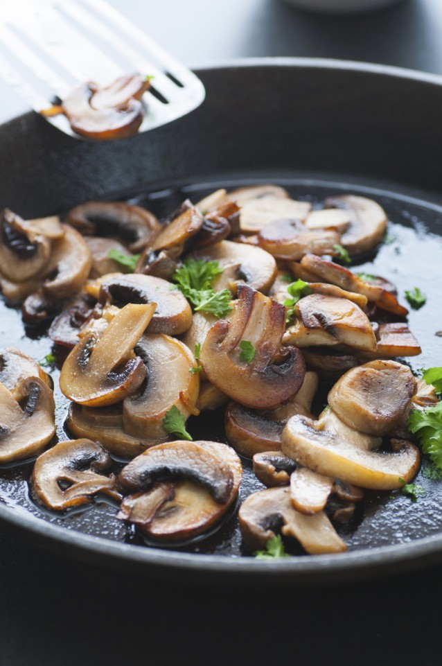 Voeg eventueel tijdens het bakken al een gekneusd teentje knoflook toe en meng met fijngehakte peterselie.