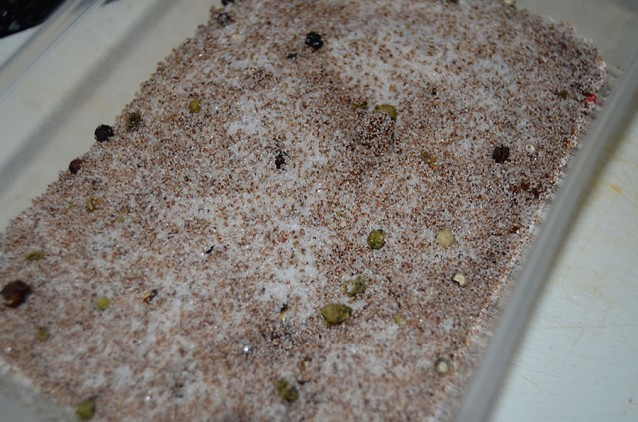 Shortcut: je kunt in plaats van droog pekelen ook nat pekelen. Dan is het proces korter (enkele uren in de pekel en eventueel een nacht laten rusten). Een pekel bestaat meestal uit water, zout, suiker en kruiden. Als verhoudingen kun je bijvoorbeeld aanhouden: 2 liter water, 200 gram fijn zout, 100 gram kristalsuiker, veel versgemalen peper, en je favoriete smaakmakers (laurier, ui). De pekel moet je eerst opwarmen, af laten koelen en dan het vlees er enkele uren in.
