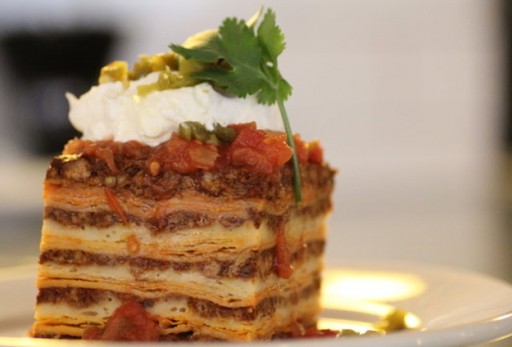 Dit recept kwamen we vorig jaar tegen op Buzzfeed, en nog steeds vinden we het idee briljant! Deze lasagne maak je namelijk van wraps met de vulling van taco’s.