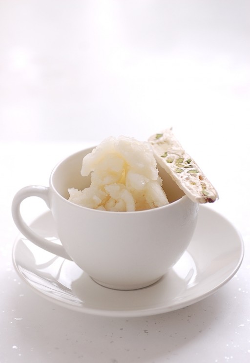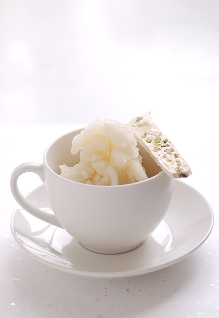 Serveer je roomijs (of sorbetijs) eens in een theekopje met wat gehakte nootjes eroverheen.