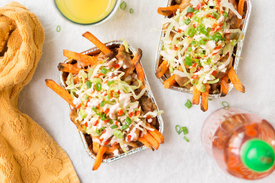 Favoriet op de Culy-redactie: kapsalon met zoete aardappelfriet en kipshoarma. Ook leuk om te maken met de kinderen trouwens. Want die gaan hier (ook) heel blij van worden.