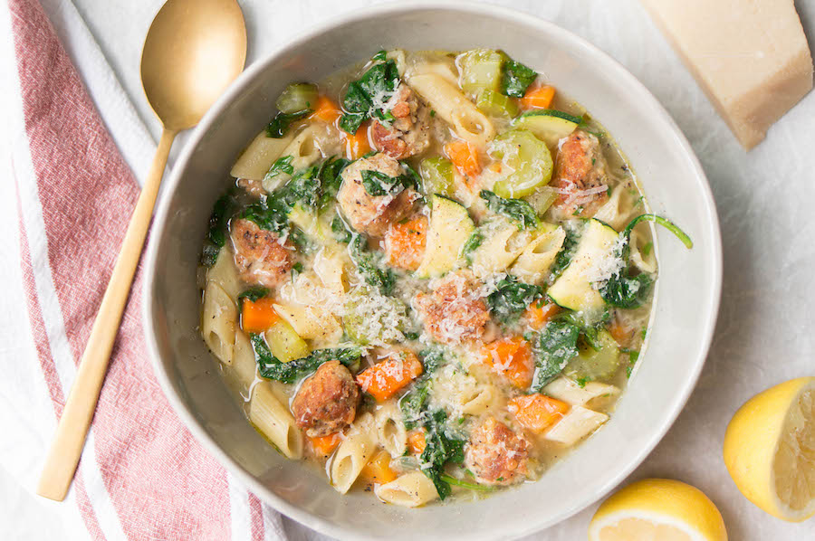 Zomer minestrone met kipgehaktballetjes