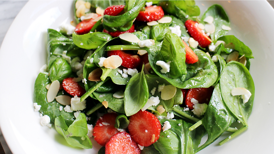 > Culy Homemade: zomerse salade met babyspinazie, aardbeien en geitenkaas