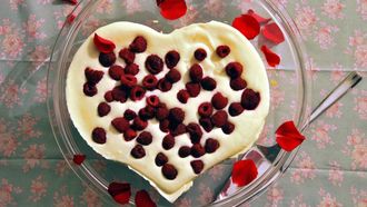No-bake Valentijnstaart met witte chocolade & frambozen