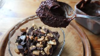 Chocolade-pindakaaspudding uit de blender