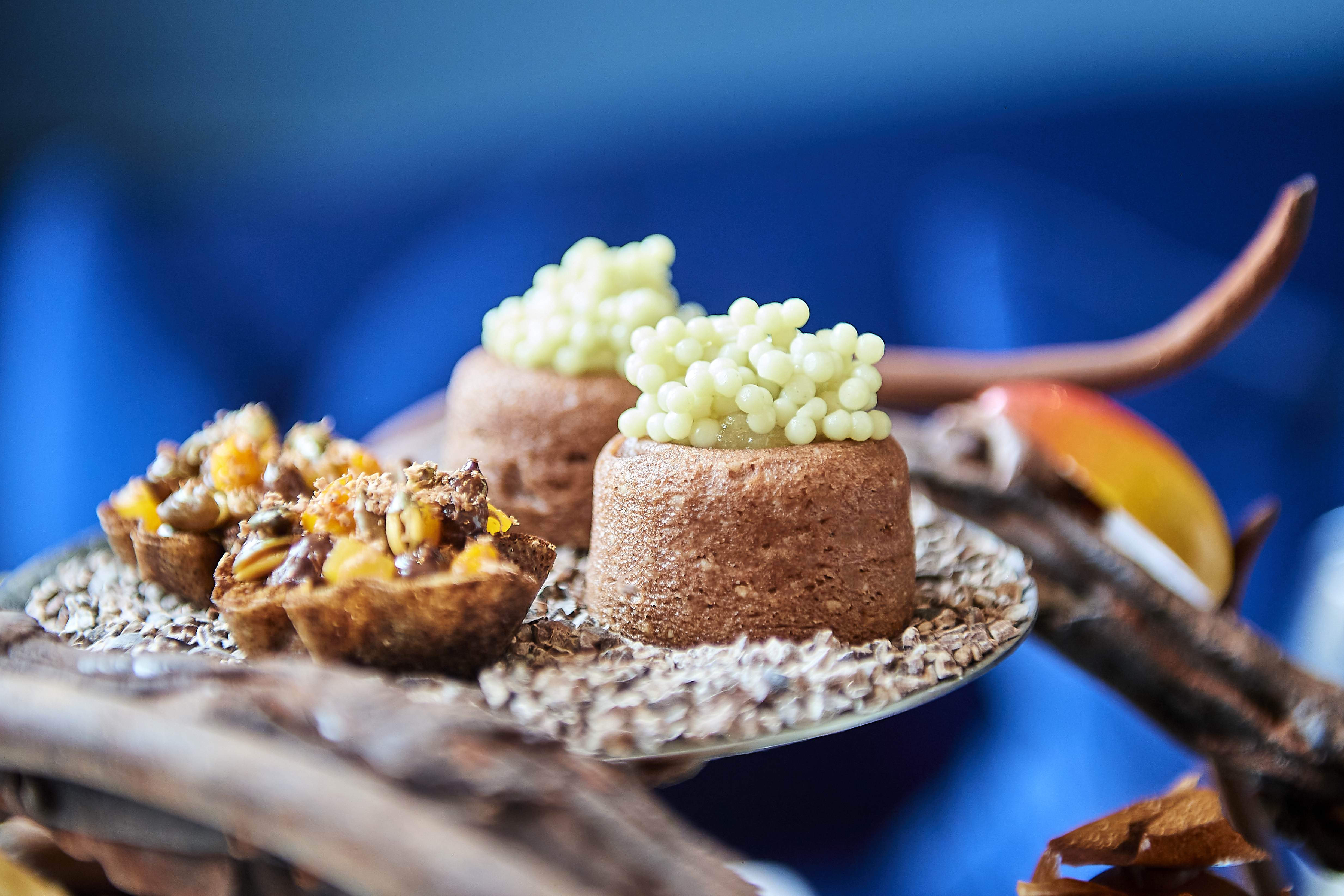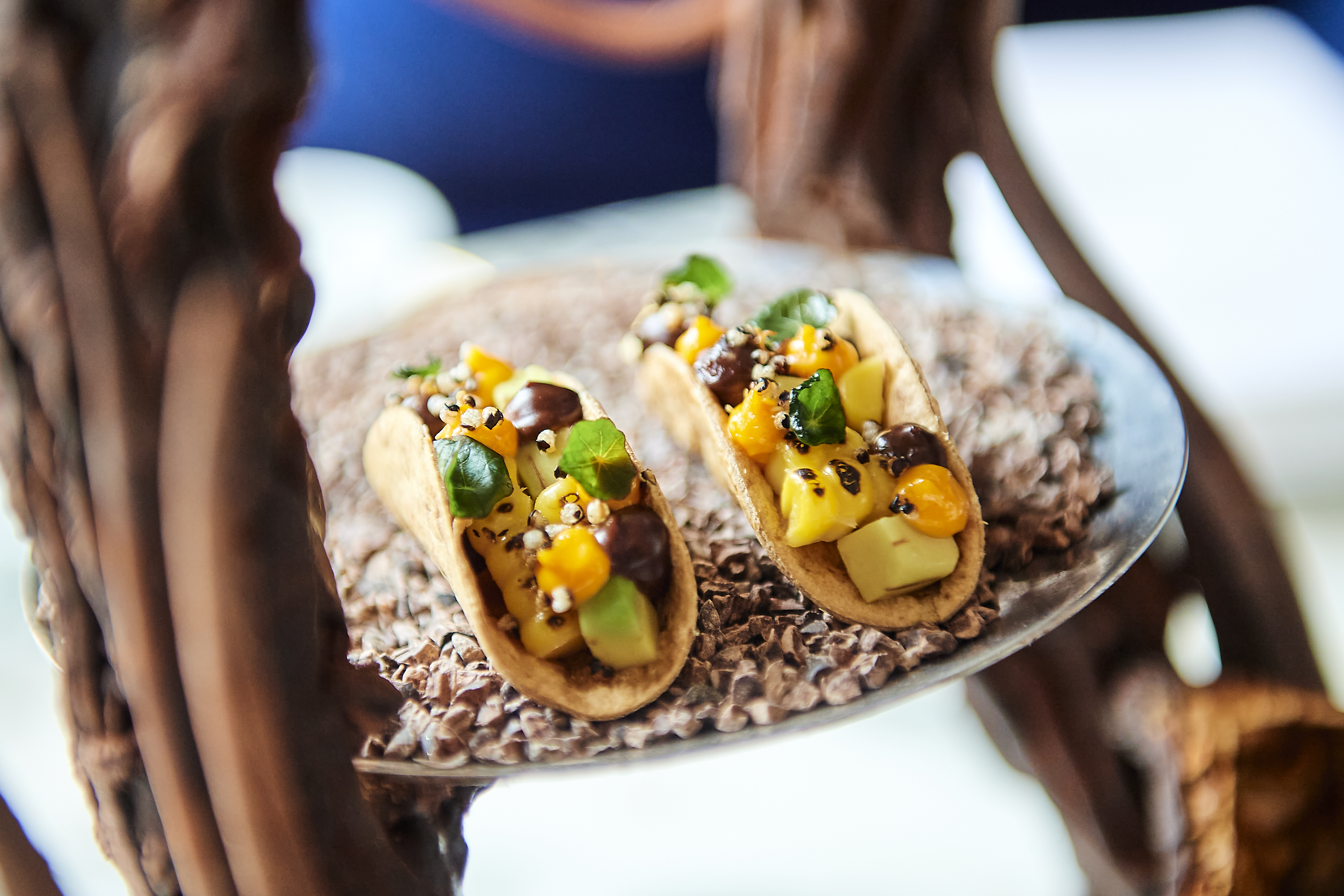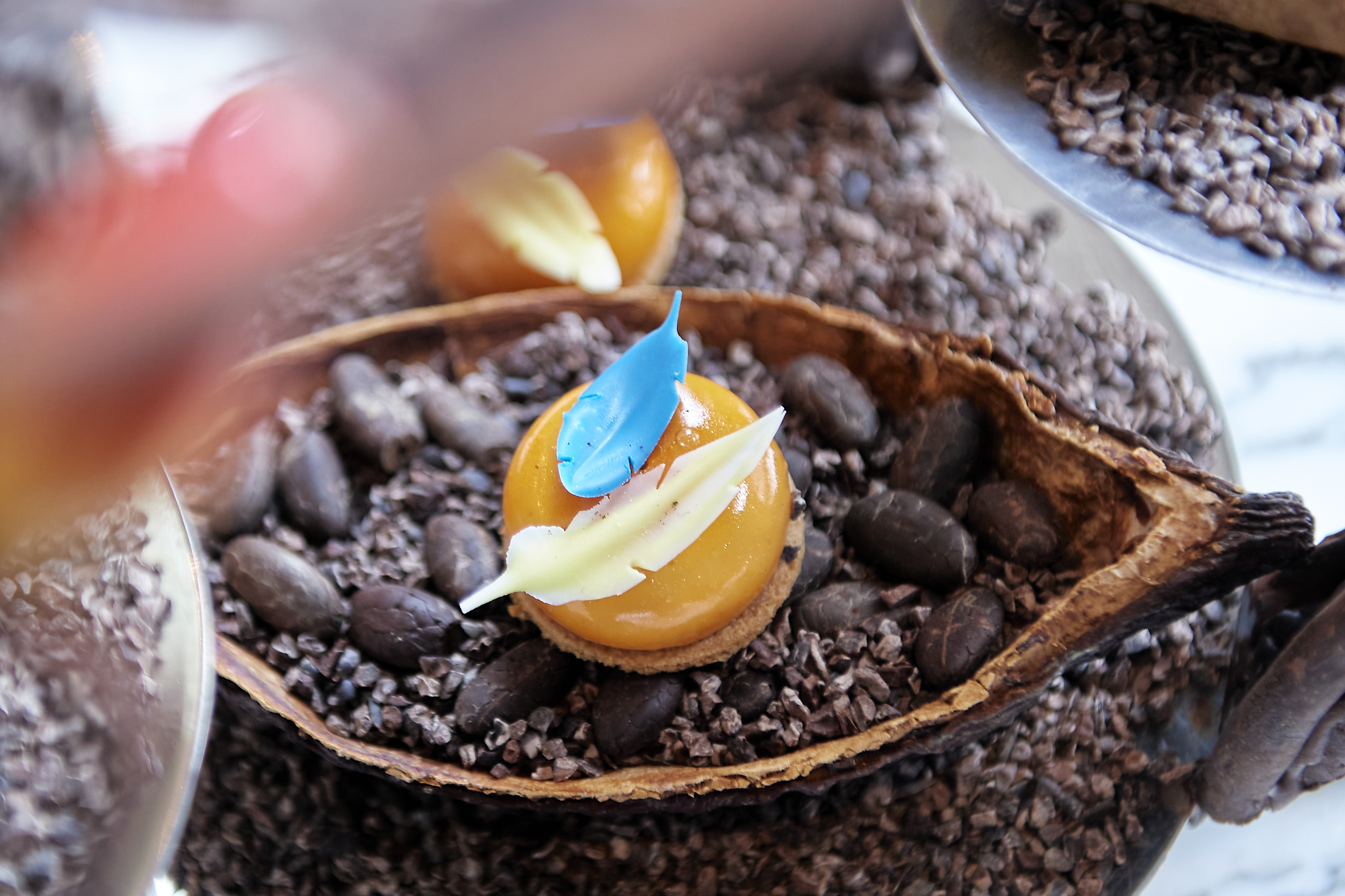 Tijdens de Afternoon Tea passeren verschillende hartige en zoete hapjes de revue. De bites zijn, zoals we gewend zijn van deze chefs, geweldig vormgegeven. Zo lijkt er eentje gebaseerd te zijn op een gevulde tacoshell en een ander is weer prachtig afgewerkt met gedetailleerde chocoladeveertjes.