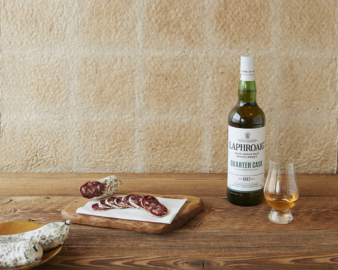 De keuze ging uit naar de Laphroaig ‘Quarter Cask’ whisky. Dit is een peated single malt die gerijpt wordt op twee verschillende vaten en waarbij de gerst gedroogd wordt boven turfgestookte vuren.