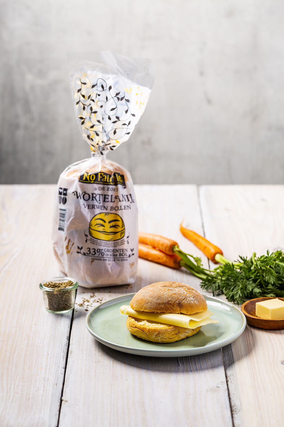 Da’s nog niet alles: No Fairytales bakt namelijk ook zoete broodjes. Hun ‘verwenbol’ is de traditionele anijsbol (ook wel bekend als Krollen), maar dan in een nieuw jasje. Dat houdt in dat de bol de smaak wortel-anijs heeft gekregen. Het broodje moet een alternatief voor de bekende krentenbol worden.