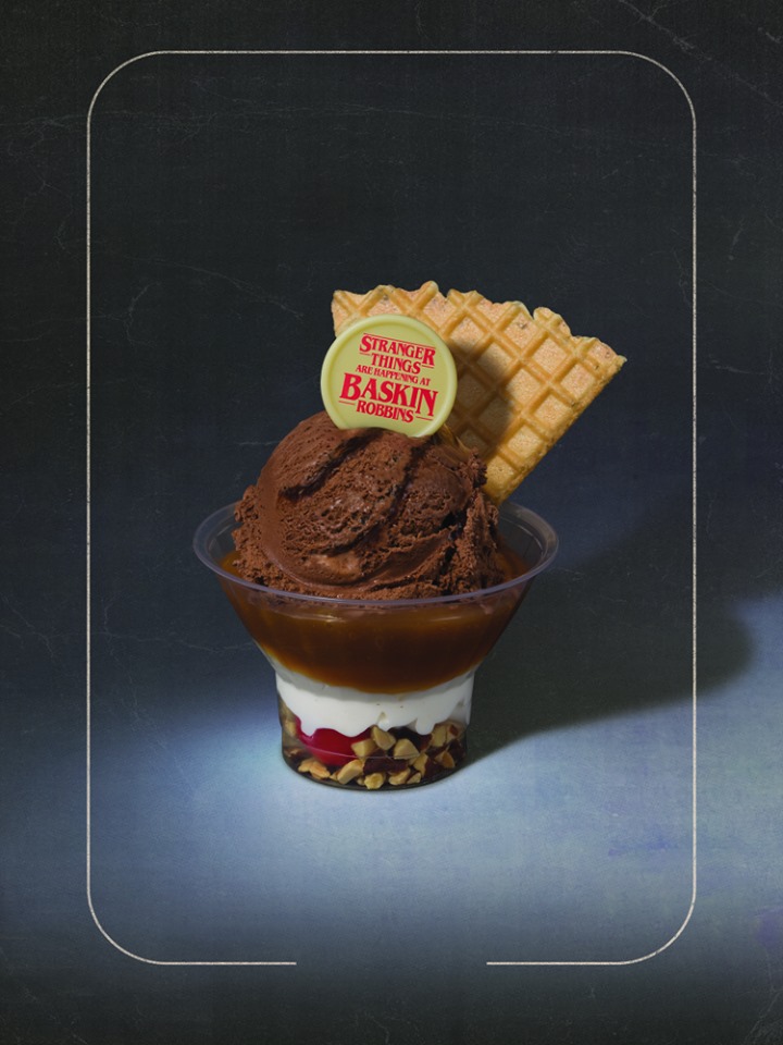 Ook kun je hier – maar ook bij andere vestigingen van Baskin-Robbins door Amerika – ijsspecials uit de serie bestellen. Bijvoorbeeld de ice cream sundae met toffee en ‘zeilen’ gemaakt van wafels, die in Stranger Things de USS Butterscotch is gedoopt. Ook is er een smoothie met vanille en limonade die de Elevenade Freeze heet. En probeer ook zeker de Demogorgon Sundae of de ijspizza met de bekende kerstlampjes uit huize Byers.