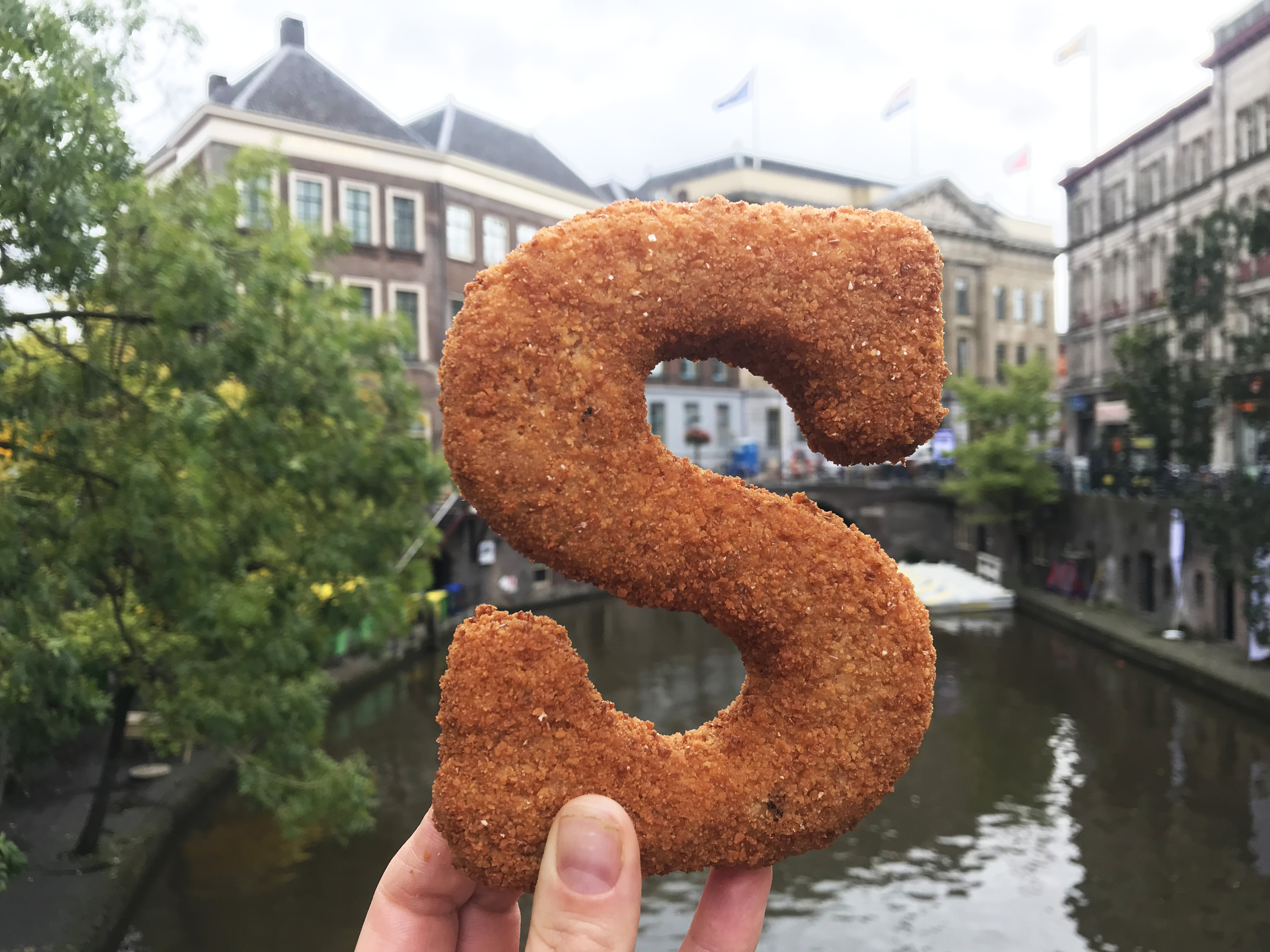 Je kan de croquet letter afhalen bij de Croquetten Boutique in centrum Utrecht: