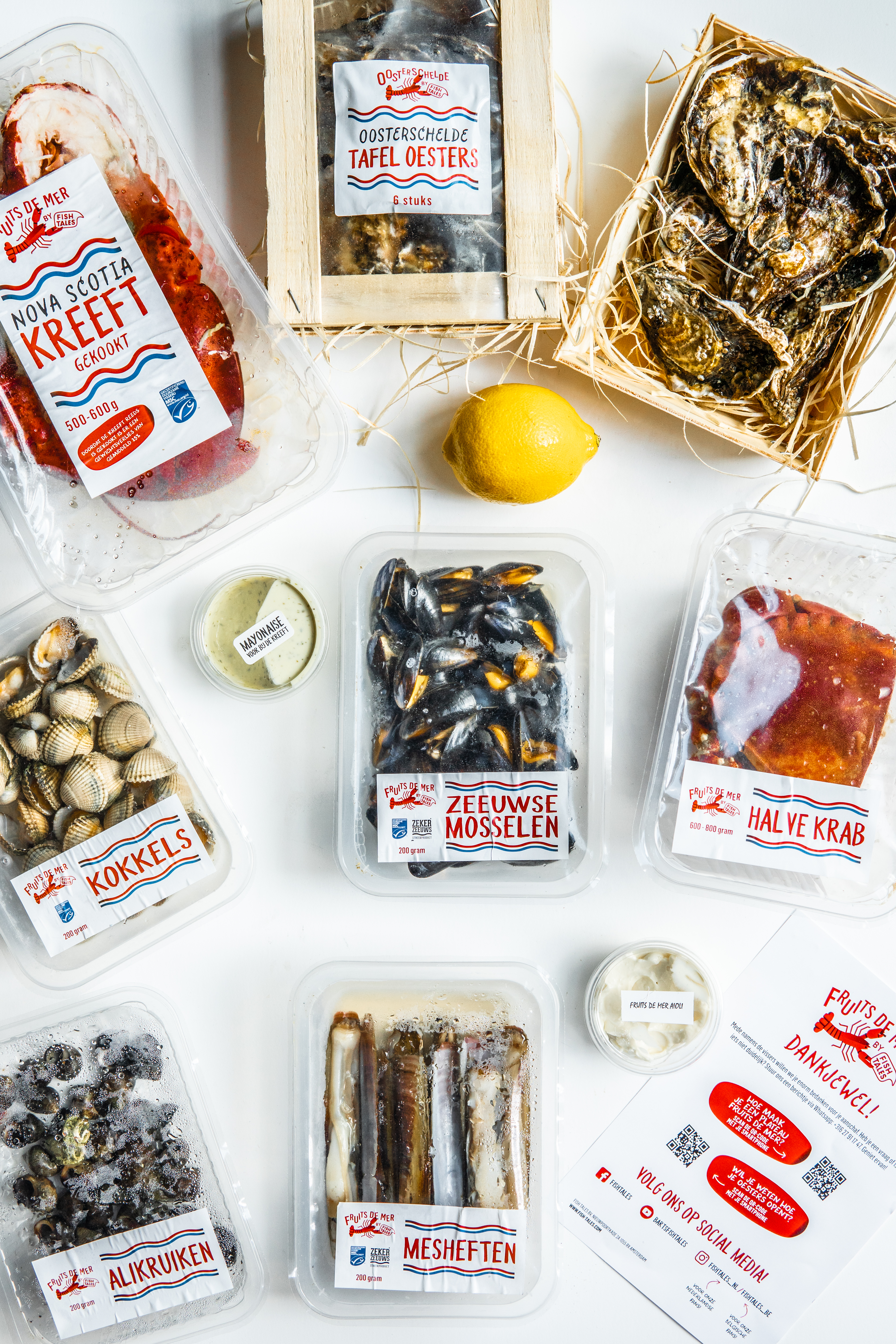 En de keuze is reuze: Zeeuwste tafeloesters, gekookte verse kreeft, Noordzeekrab, alikruiken, kokkels, scheermessen, palourdes, Zeeuwse mosselen, langoustines, en ongepelde Hollandse garnalen (die héle goede). Het is een zeevruchtenfeest. Met daarbij (desgewenst) wijn en sauzen: frisse mayo met zeekraal en ‘fruits de mer aioli’. Er is ook nog een tof bijpassend brood in de vorm van Pain de mer: Zeeuws natuurdesembrood met zout uit zeewier.