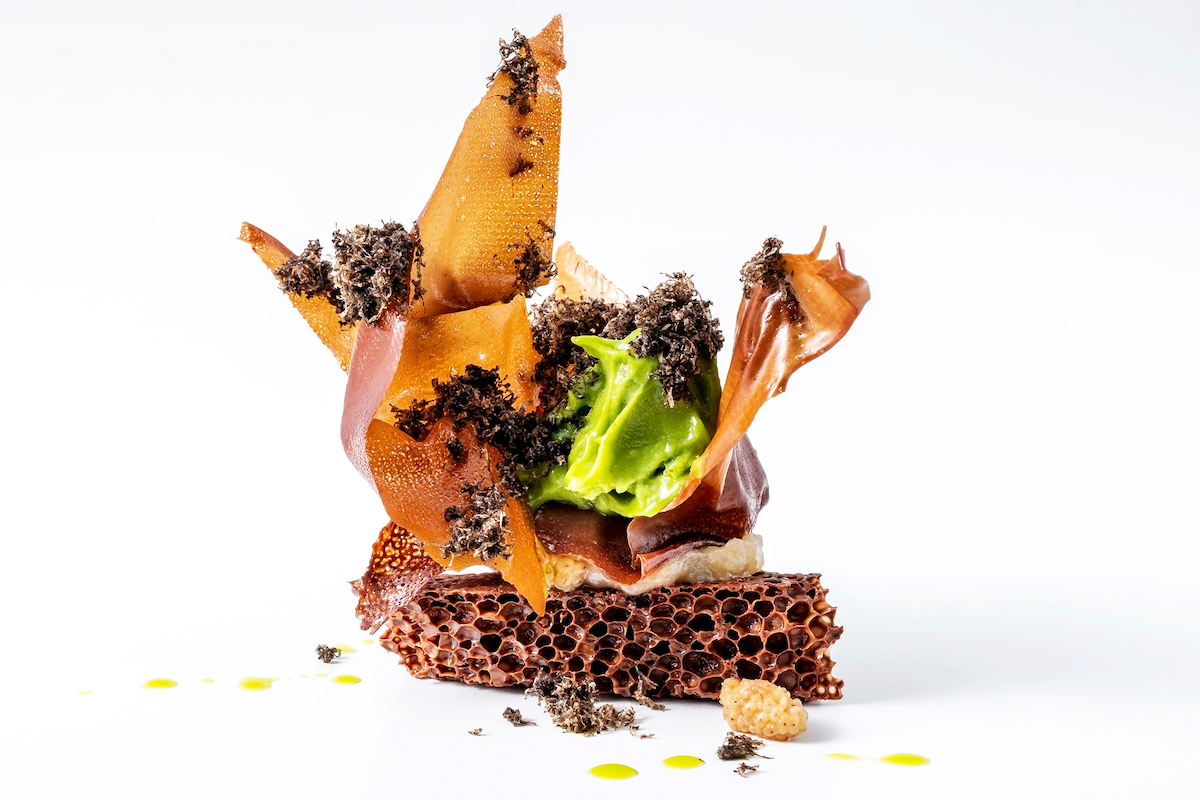 Op de kaart staan bijvoorbeeld een pastille van duindoorn met oester, kombu-gel en krokante garnalen. Maar ook gekarameliseerde kalfslever met mosterd- en venkelzaad, boerenkool-chlorofyl en bacon-olie. En wat dacht je van aardpeer met een sorbet van zoete mais, whisky en sesam?