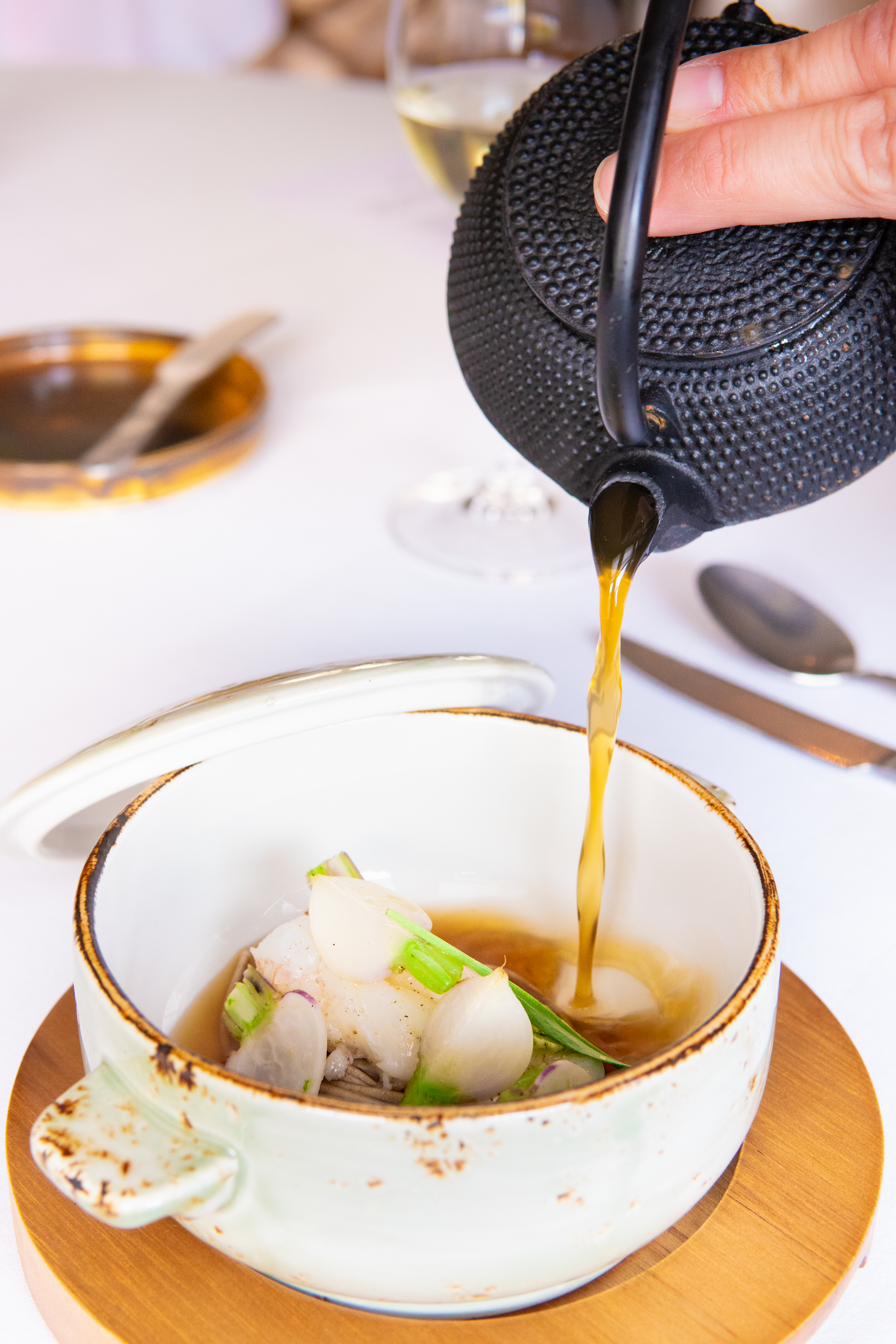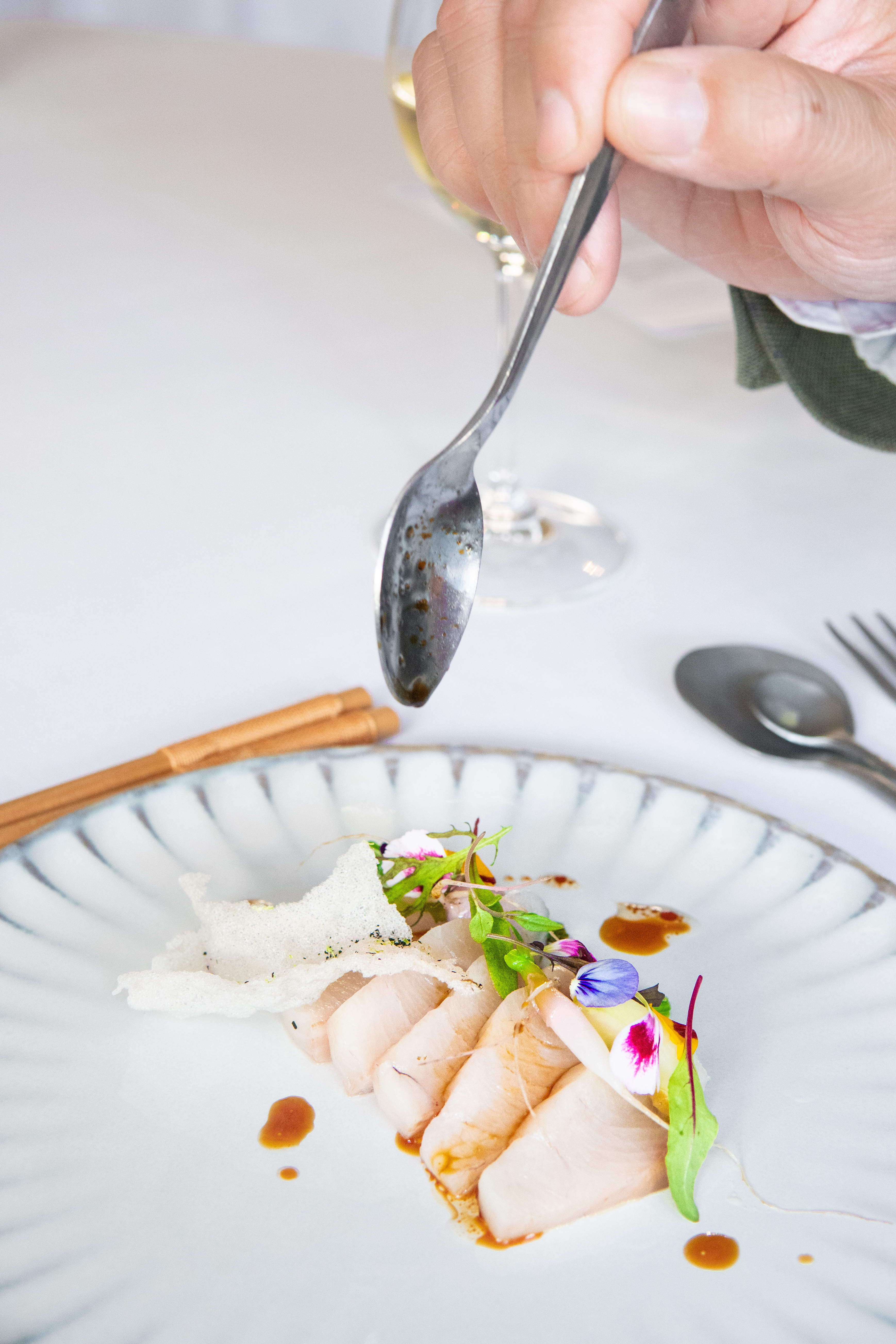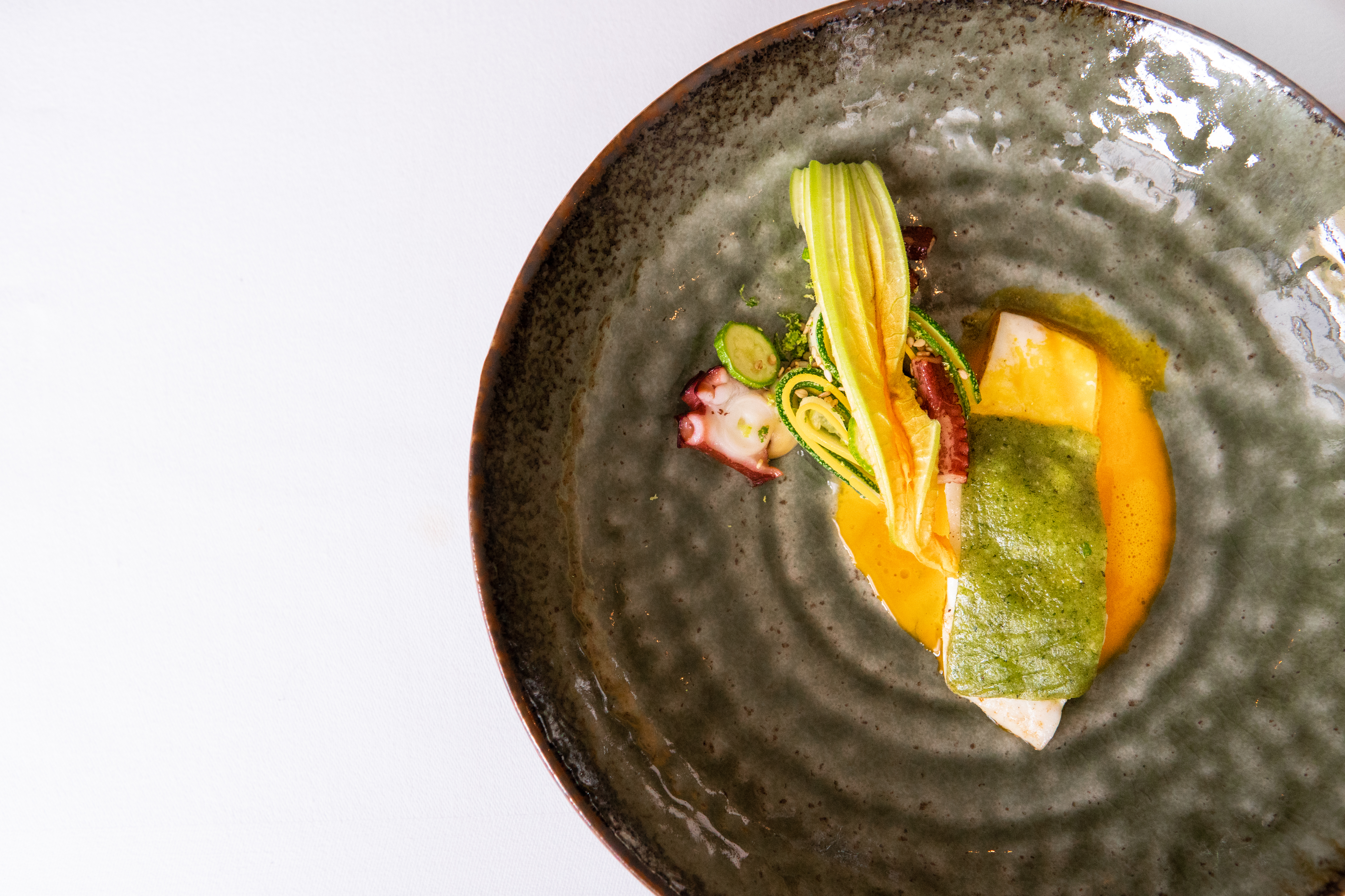 Dat is zéker ook te merken aan tafel. Want ondanks dat Niven hier een aantal van zijn signatuurgerechten serveert (en nog steeds de nadruk legt op groenten en de mooie producten van het Westland – waarvoor hulde), is er ook een nieuwe liefde de keuken ingeslopen: die voor de Japanse keuken.