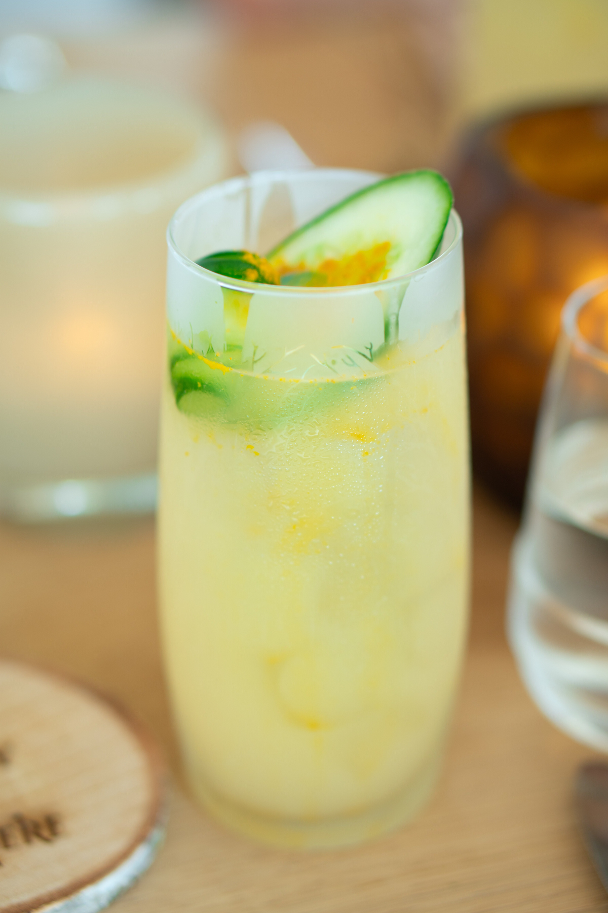 We trappen het menu van de chef af met de Pomme Highball: de ideale cocktail voor bij de brunch. Het drankje past bij de toenemende vraag naar cocktails die laag in alcohol zijn en die verse ingrediënten bevatten. Erin gaan Belvedere Vodka, vers appelsap (van de boerderij op twee minuten rijden van de locatie waar we vandaag zijn), limoensap, honing en soda. Zó lekker, wij zeggen: move over, Bloody Mary en Mimosa!