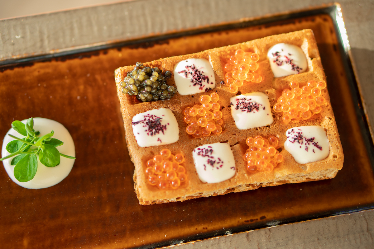 Schilo bedacht een speelse pairing met de wodka van Belvedere, die hij in augustus serveert in de Brasserie van het Conservatorium Hotel. Denk aan een knipoog naar Polen (land van herkomst van Belvedere Vodka) met een pierogi. Ook kun je je tanden zetten in een ‘rye waffle’, gemaakt van rogge: het hoofdbestanddeel van de wodka.