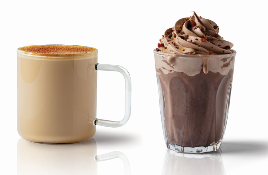 Sugar, spice and everything nice gaat volledig op voor deze kerst flat white. Een verse espresso met een vleugje kardemom, vanille en kaneel voor een verfijnde twist. Door de melk wordt kaneelsuiker gestoomd en over de espresso gegoten voor een extra Christmassy touch. All I want for Christmas, is yoooouuuu-hou-hou-hou!