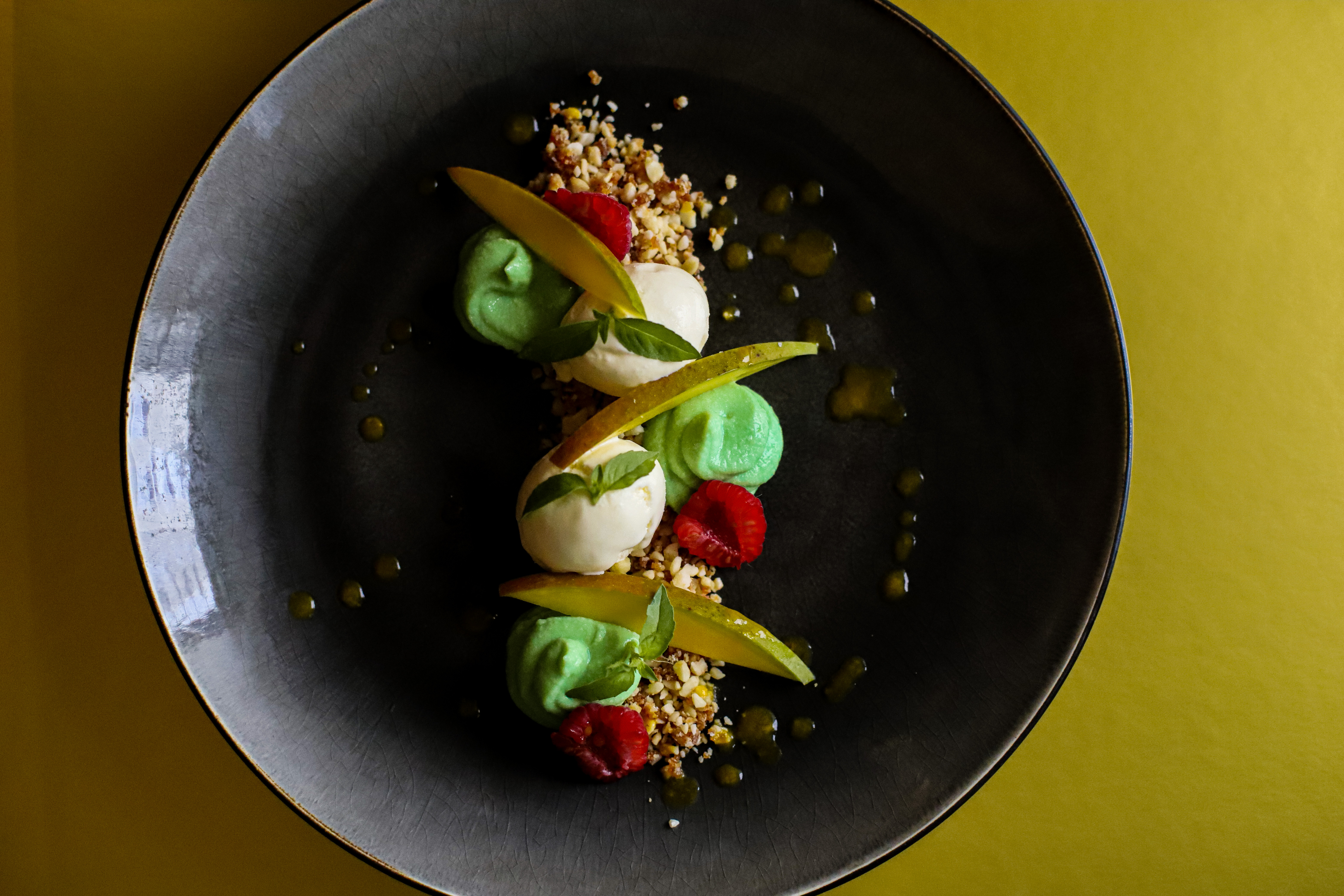 Het toetje wordt over de Mediterraanse boeg gegooid: Kataifi met pistache ijs, gekonfijte citroen, honing en hangop. Je zou verwachten dat dit een mierzoet dessert is, maar we zijn positief verrast als we merken dat het tegendeel waar is.