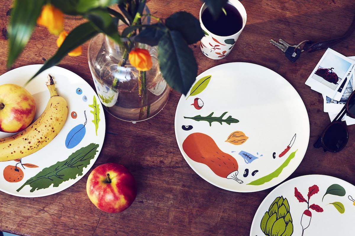 De collectie is opgedeeld in twee verschillende lijnen. De eerste bestaat uit 13 items: 4 verschillende borden, 4 mokken, 4 kommen én 1 waterkan, allemaal gemaakt van porselein. De andere lijn wordt gevormd door items gemaakt van bamboe: licht, duurzaam en o ja, ook nog stevig (handig als je kinderen hebt die dingen nogal eens laten vallen). In die lijn vind je 4 verschillende borden, 2 bekers en een dienblad.