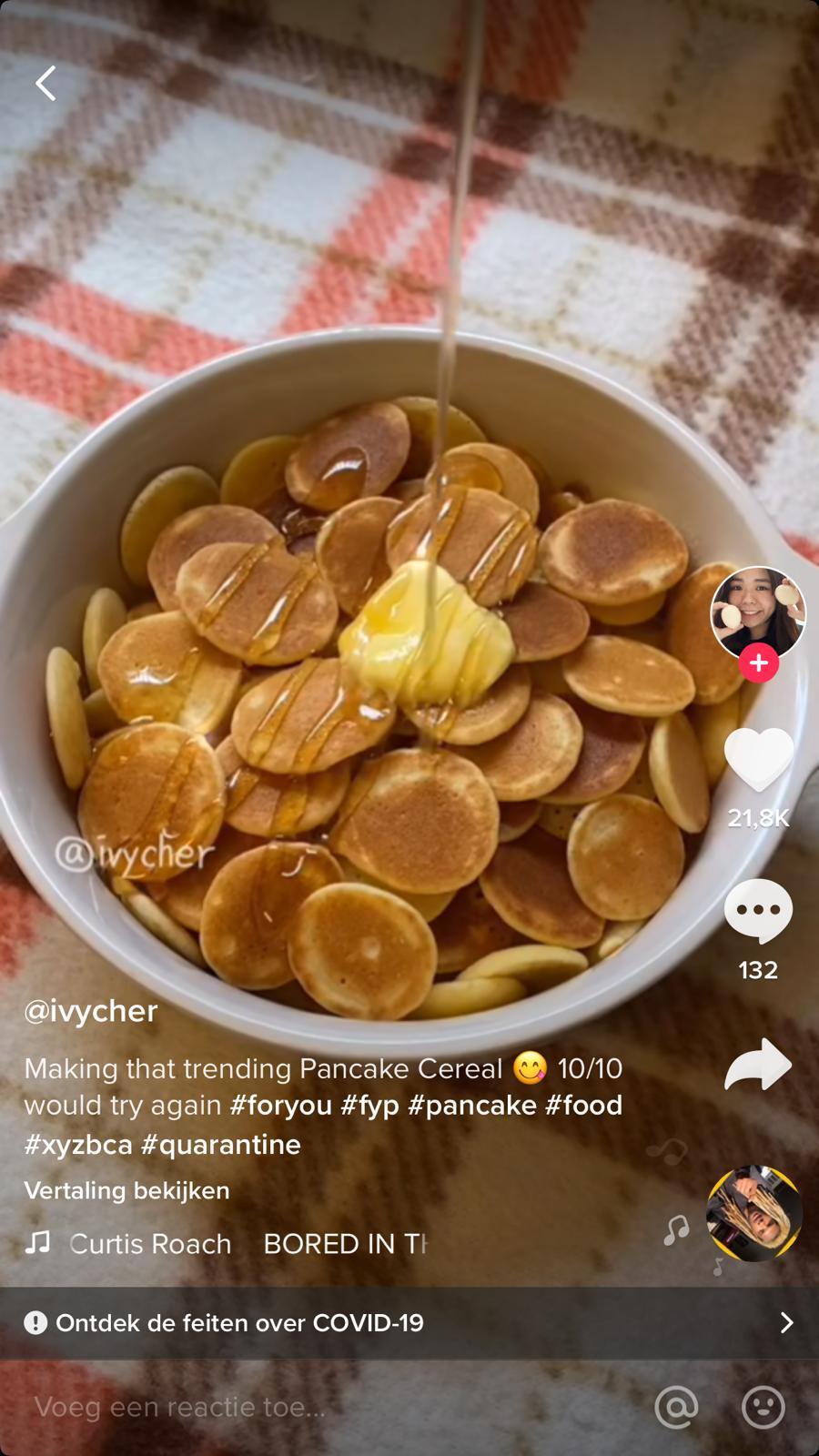 Pancake cereal is de nieuwste trend onder ons quarantainegangers. Op de social media-apps TikTok en Instagram is deze voedseltrend in ieder geval viral gegaan.
