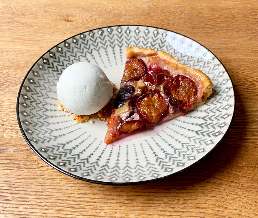 Zelfs het toetje is gerookt: de pruimentaart met gerookte crème anglaise is een héél bijzonder en interessant dessert.