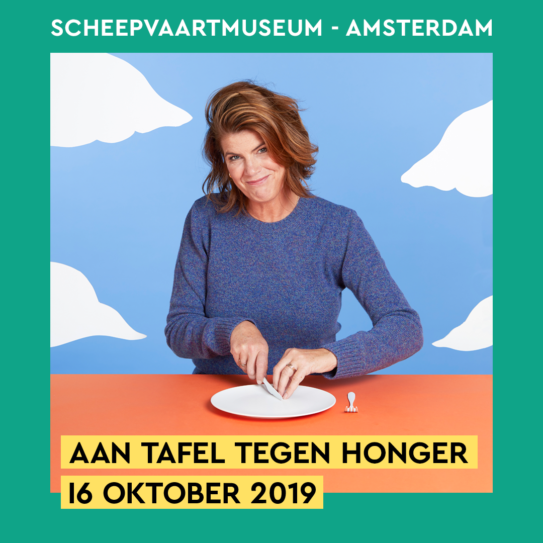 Op 16 oktober – World Food Day – gaan 500 ambassadeurs aan tafel tegen honger in het Scheepvaartmuseum in Amsterdam. Zes bekende chefkoks – Joris Bijdendijk, Yvette van Boven, Samuel Levie, Nadia Zerouali en Ralph Dalhaus (chef van het Scheepvaartmuseum) – zetten je de maaltijd van de toekomst voor. Ook van de partij is internationale gastchef Selassie Attadika. Zij staat bekend om haar nieuw-Afrikaanse keuken.